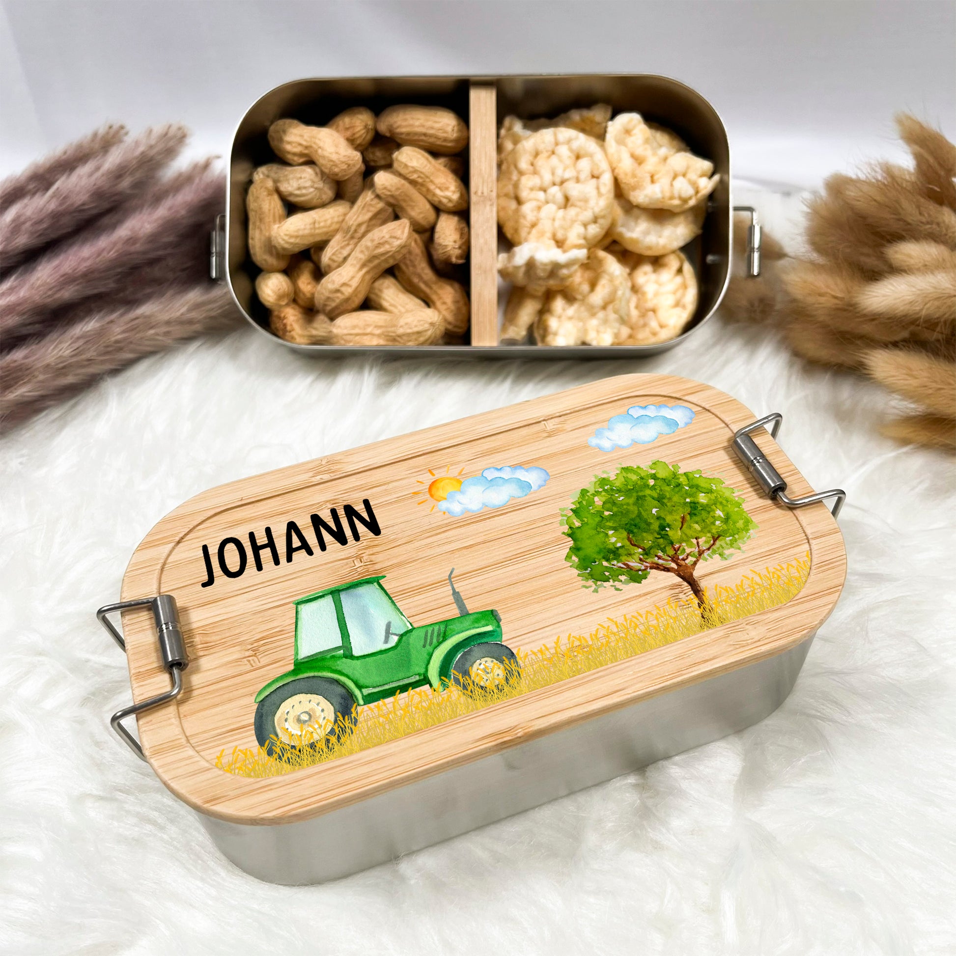 🌟 Personalisierte Edelstahl-Brotdose mit Bambusdeckel, sowie Motiv und Namen– Liebevoll gestaltet von Zauberklein 🌟