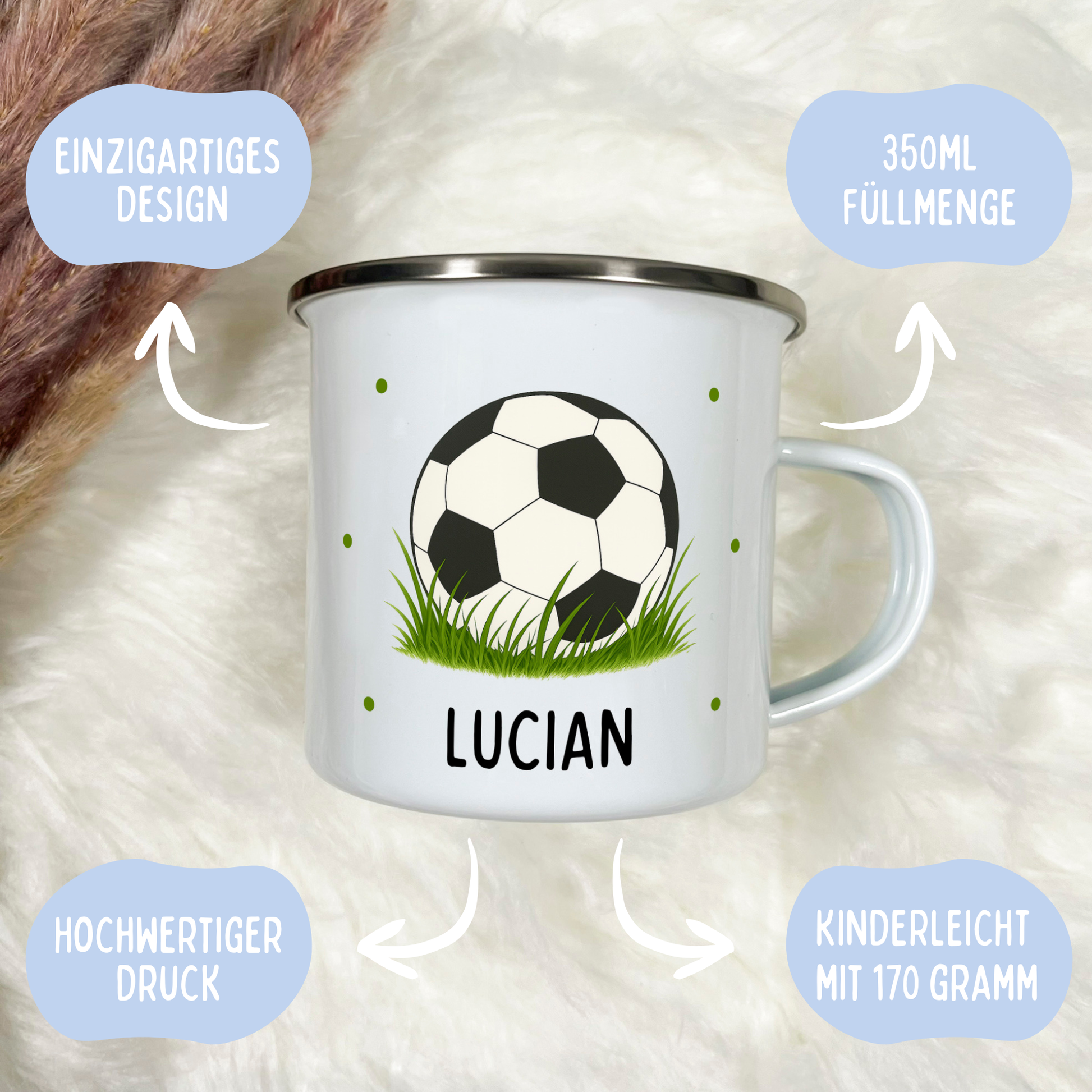 Emaille Tasse Fußball