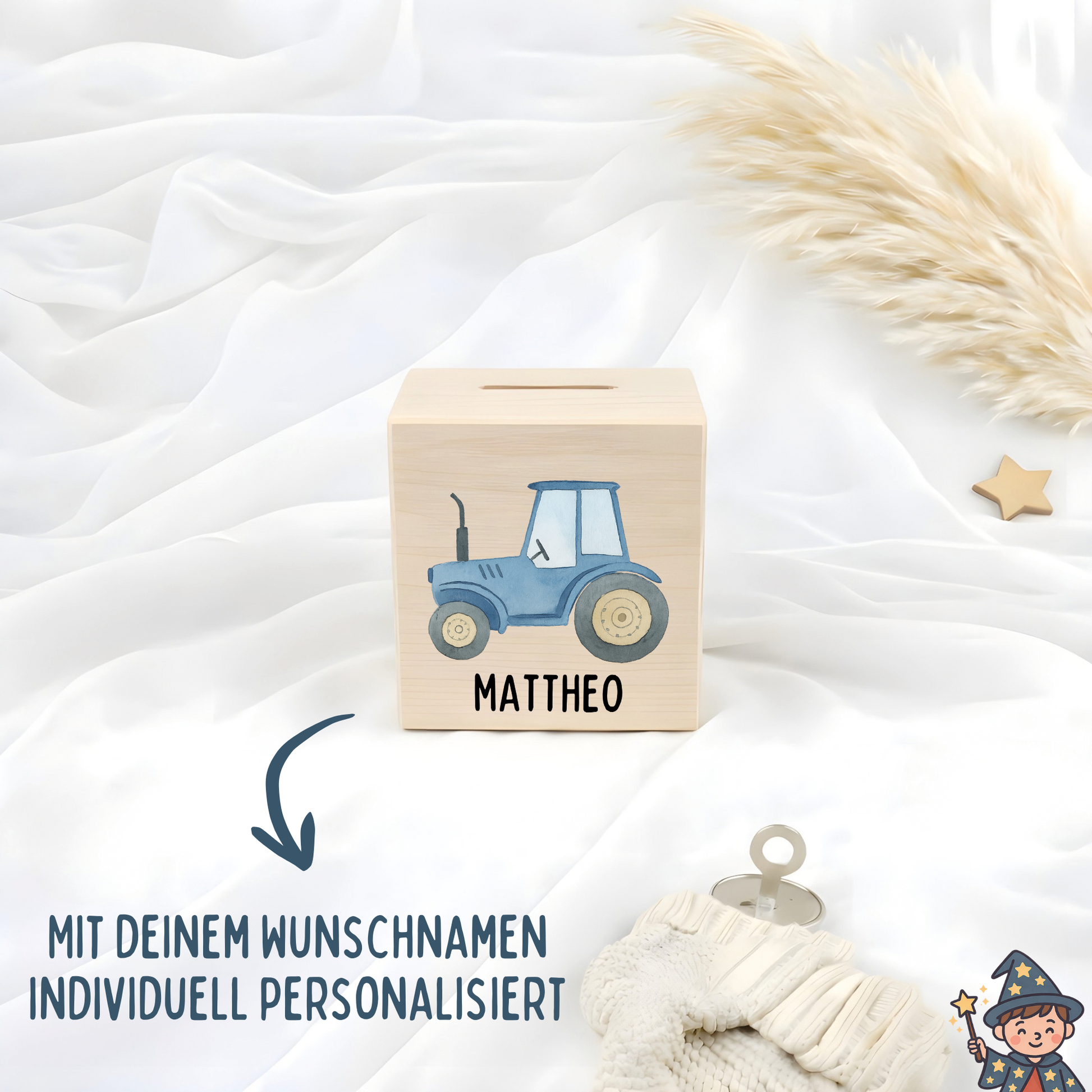 Unsere personalisierte Holzspardose von Zauberklein ist mehr als nur ein Ort zum Sparen –