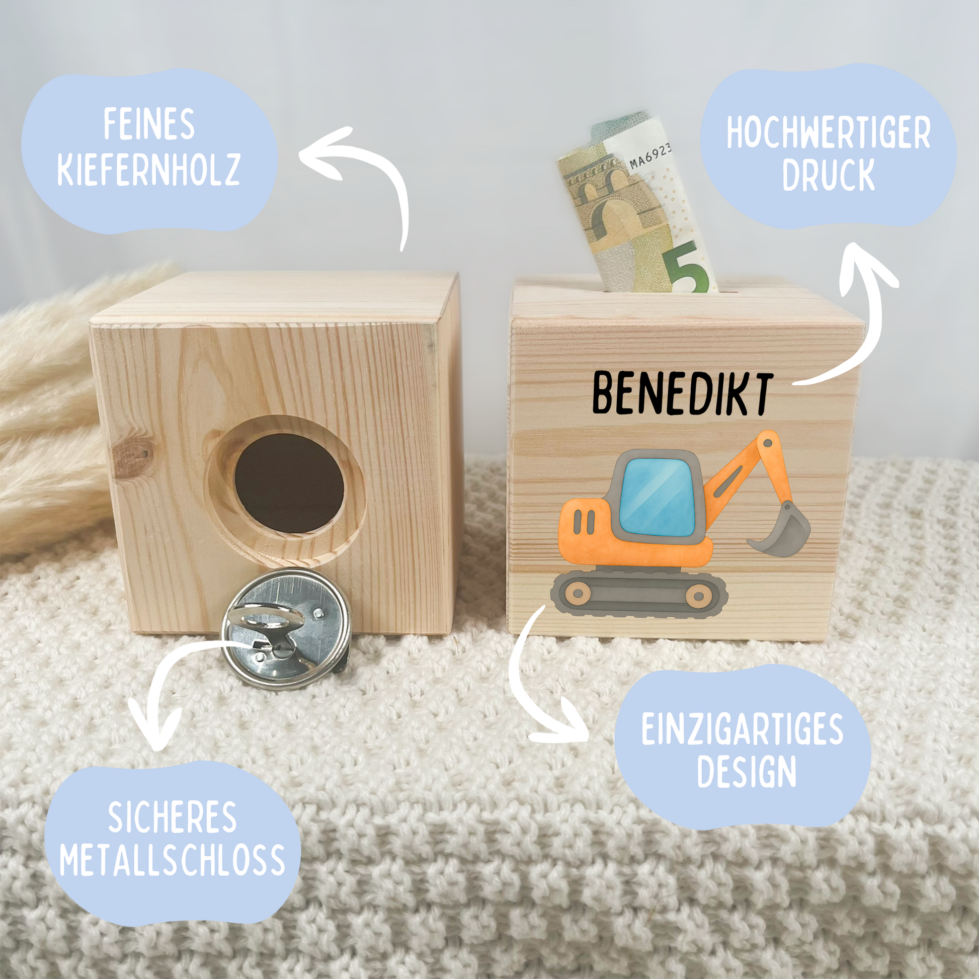 Ob als persönliches Geldgeschenk, zur Taufe, zum Geburtstag oder einfach als liebevolles Highlight im Kinderzimmer: diese Spardose ist ein Geschenk, das berührt, begeistert und bleibt.