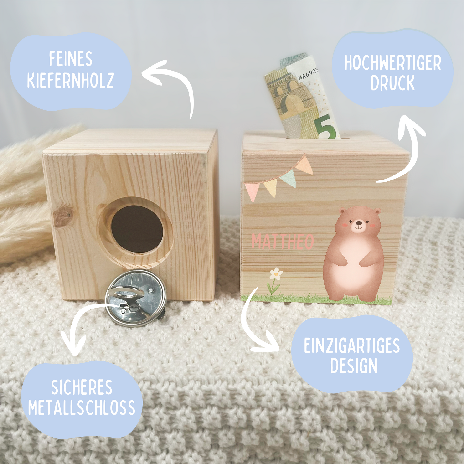 🌟 Personalisierte Holzspardose mit Namen – Liebevoll gestaltet von Zauberklein 🌟